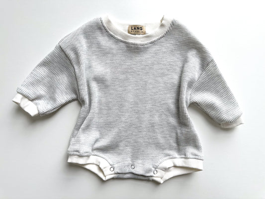 BABY WAFFLE BODYSUIT ROMPER - CLOUD GREY