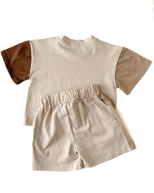 KIDS T-SHIRT AND SHORTS CO-ORD SET - EARTH TONES