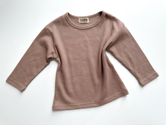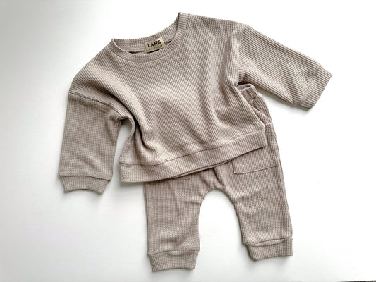 KIDS WAFFLE SWEATSHIRT AND JOGGER CO-ORD SET - SOFT MOCHA