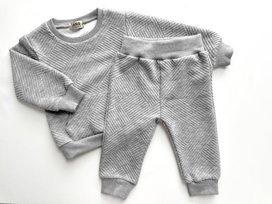 KIDS TEXTURED PATTERN SWEATSHIRT AND JOGGER CO-ORD SET - STORM GREY