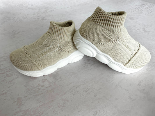 KIDS KNITTED MID TOP BOOTIES - STONE IVORY