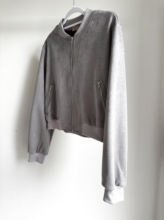 WOMENS VEGAN SUEDE ZIP UP BOMBER JACKET - DOVETAIL GREY