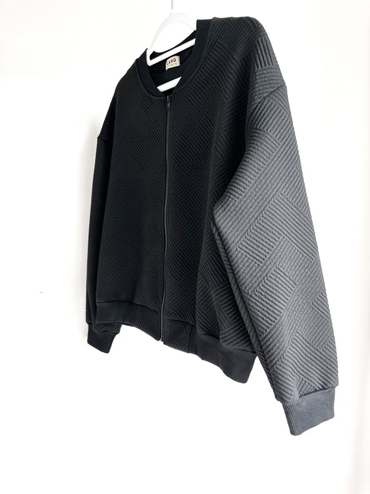 WOMENS TEXTURED PATTERN ZIP UP BOMBER JACKET - NOIR BLACK