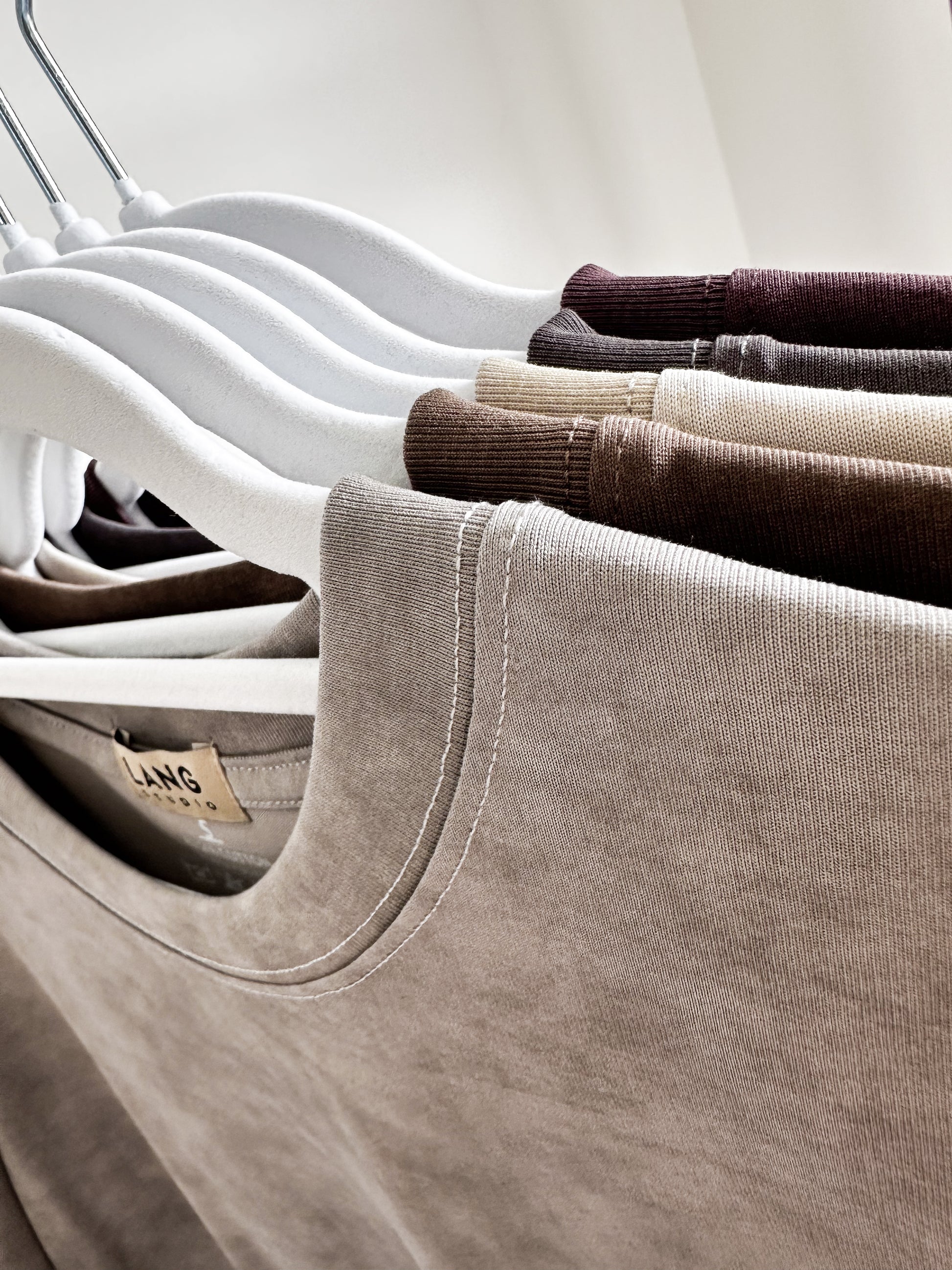A regular fit washed effect T-shirt. An elevated T-shirt for everyday. Luxury mid weight and feel.
