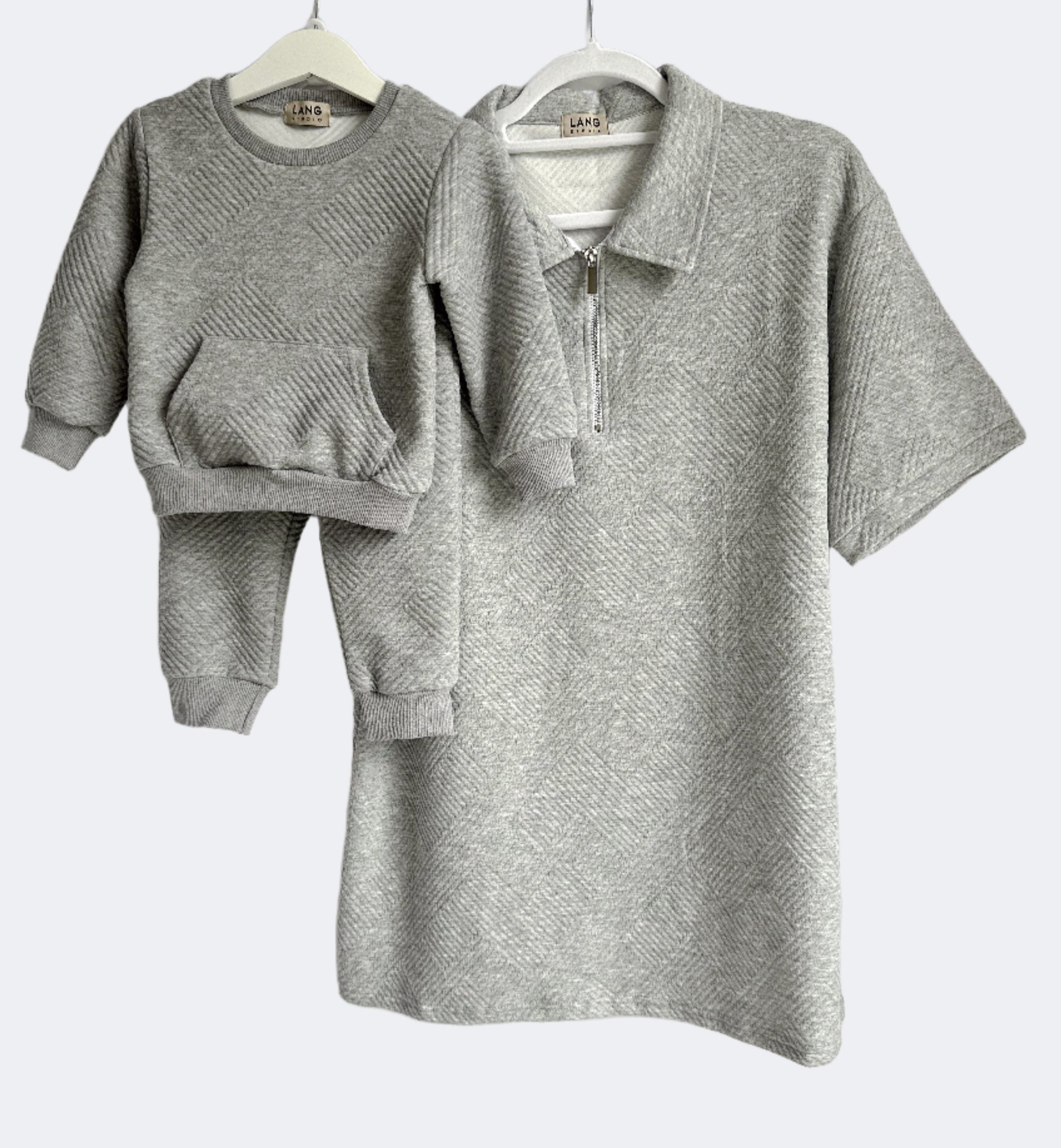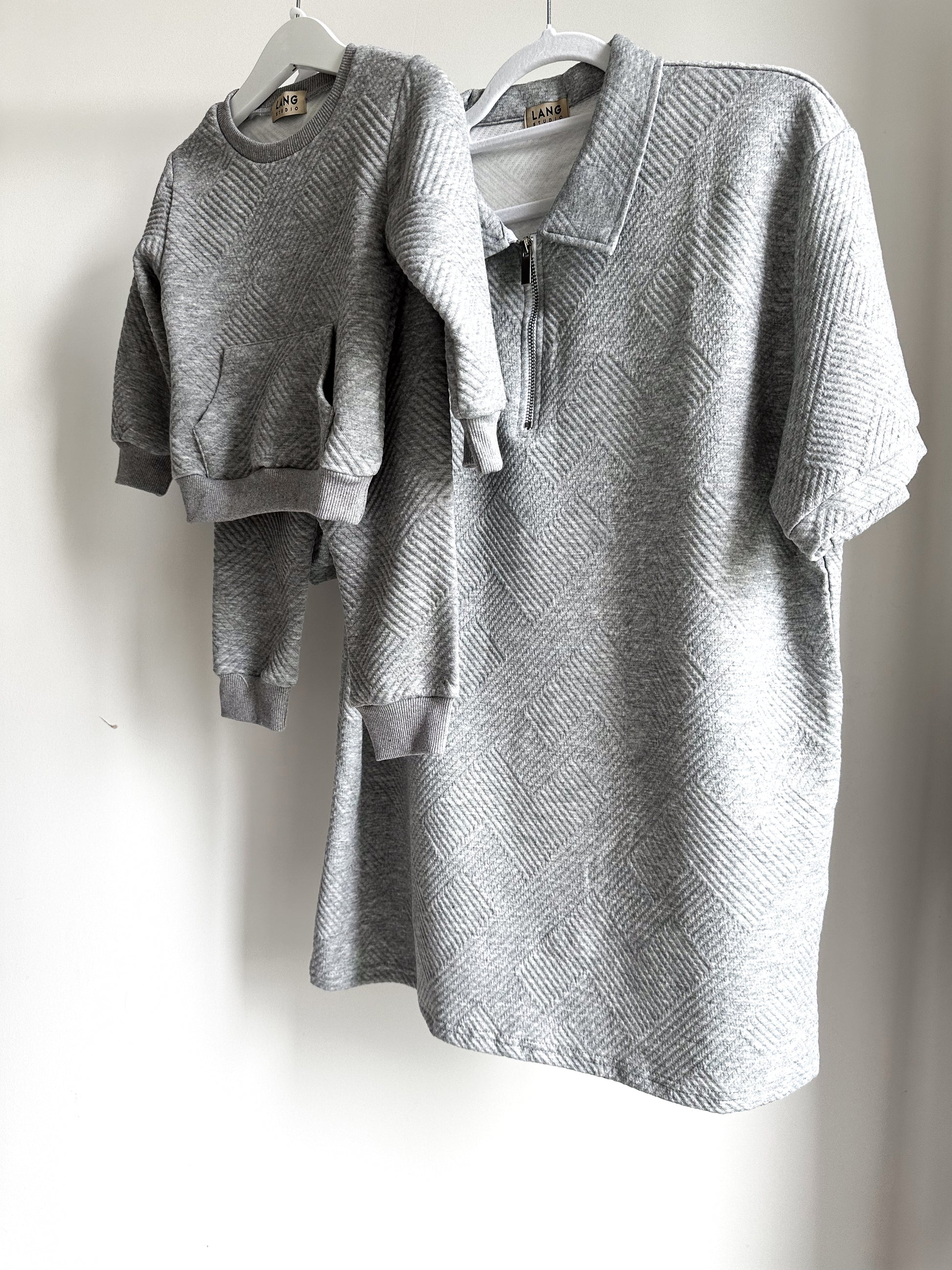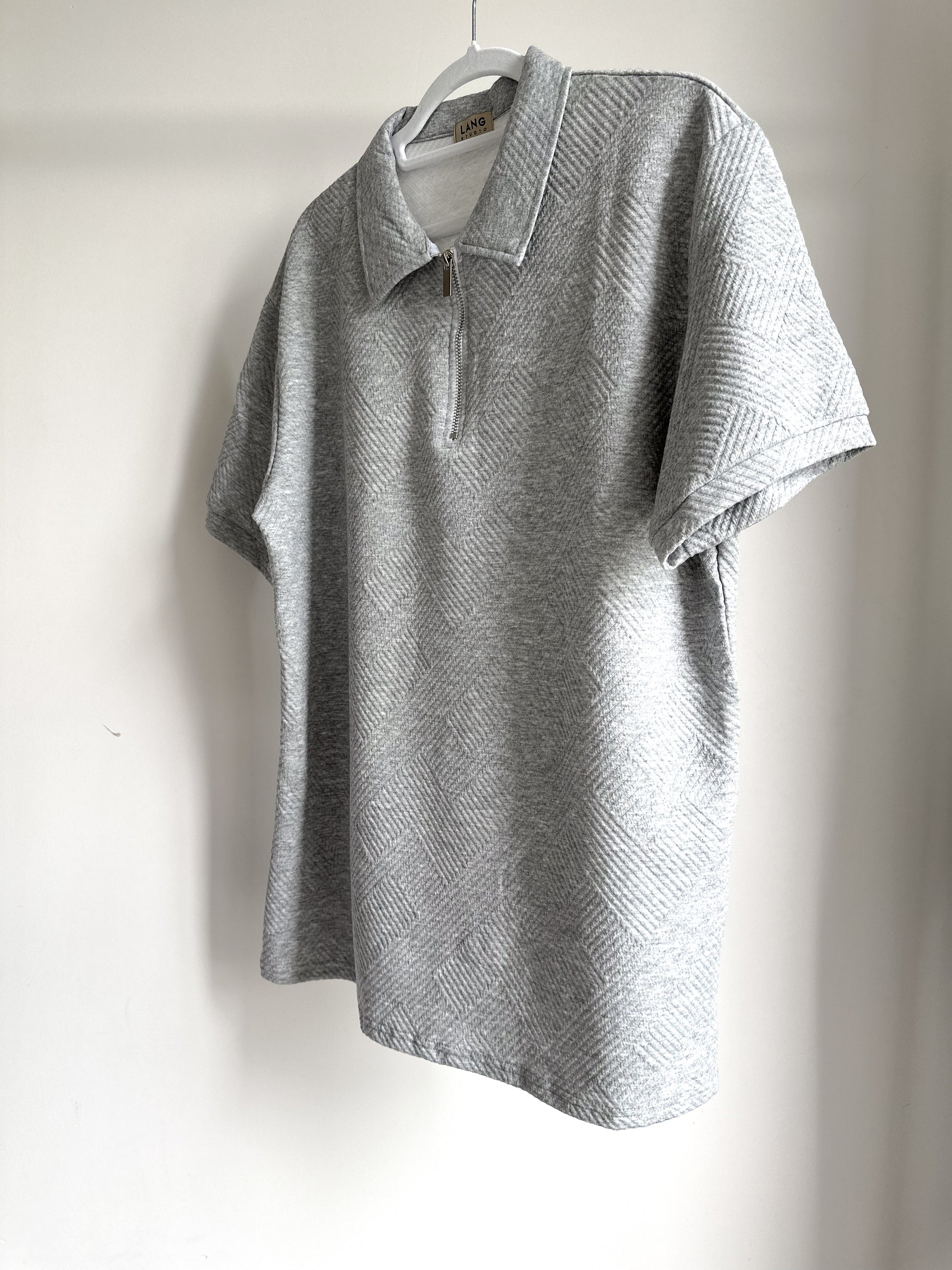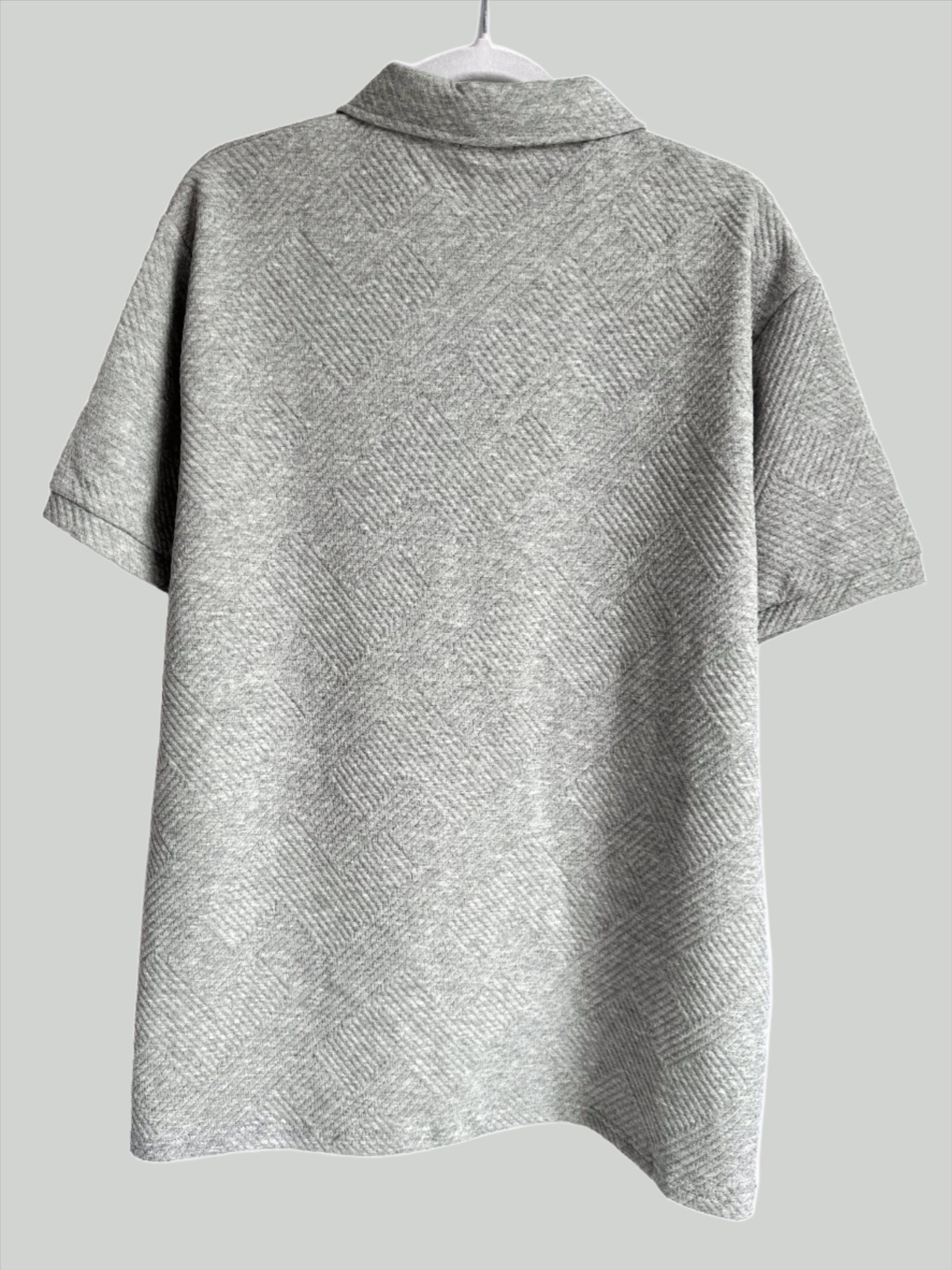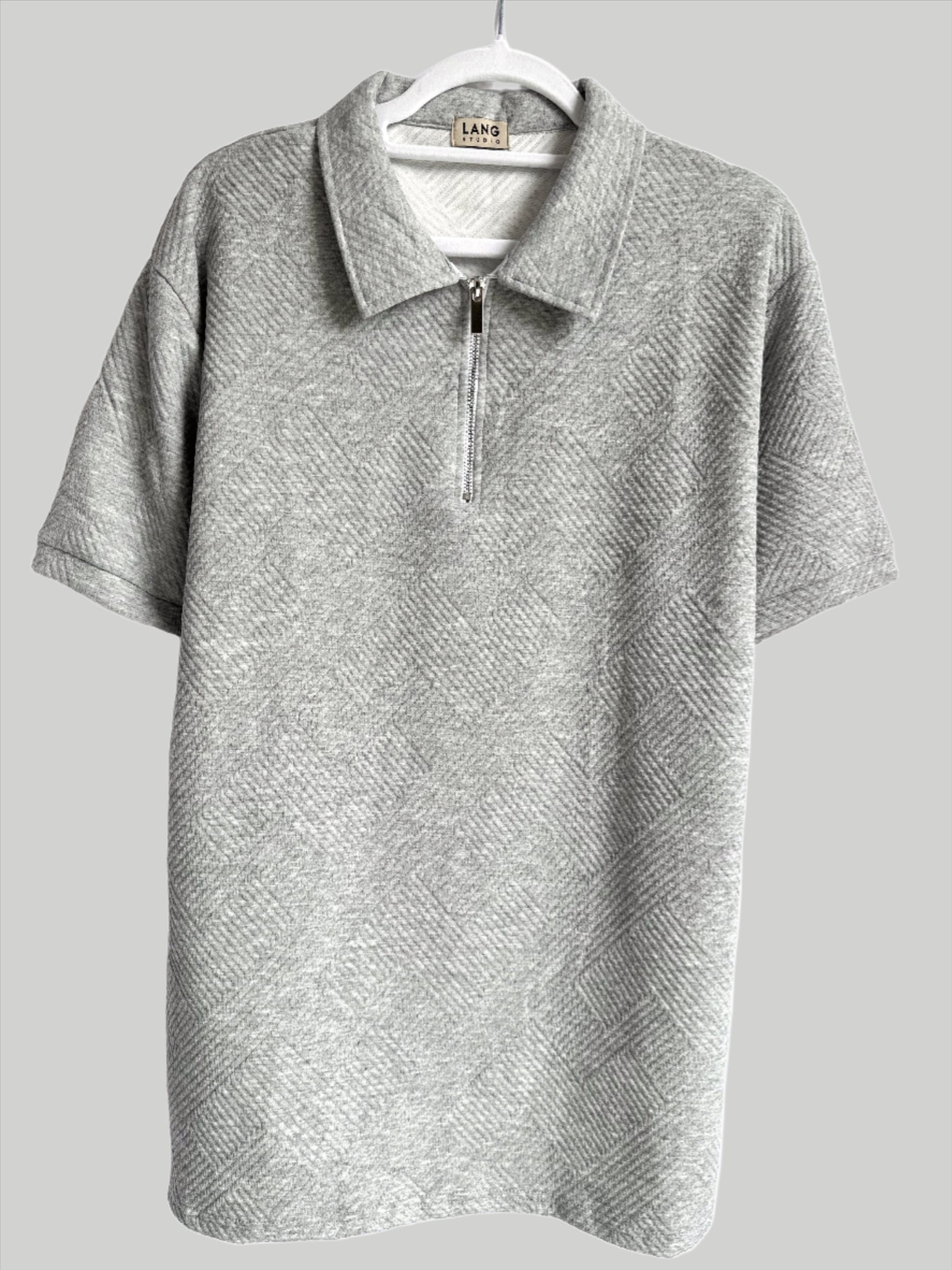 MENS TEXTURED PATTERN ZIP COLLAR POLO SHIRT - STORM GREY